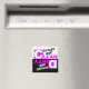 Magnet to place on the front of your dishwasher to help remember if dishes are clean or dirty. Features pink and white letters.