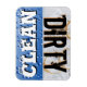 This popular, cute and unique Clean and Dirty kitchen dishwasher magnet design, now made into a vinyl flexible magnet, with fun blue sparkling bubbles with the word "CLEAN" in white text on one half and a coffee stained napkin is the background with the word "Dirty" in black grungy text on the other half. A nice gift idea for the domestic goddess for her kitchen! The fun solution to the problem of whether the dishes are clean or still dirty and as to when to load or to empty the dishwasher.