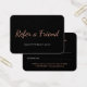 This sleek and stylish design features a black background with a subtle pink accent. The text is written in a modern font, making it perfect for professional businesses looking for a modern, yet sophisticated referral card.
