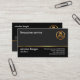 A simple plain retro card with a gold demarcation line separating the grey column from the black one below. In the grey space, at the upper left corner lies the business option "Limousine Service" ; This option is customizable and you can change it to suit your type of transport business. Over in the opposite direction you have the faux gold logo of a chauffeur. In the black column, there is your prestigious name and job title with the contact details at its right end.