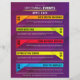 Organize your upcoming events with this clean & modern schedule planner flyer featuring colourful divider boxes and purple abstract lines background. Customize flyer to your liking and add a backside if desired!