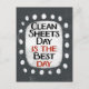 "Clean Sheets Day Is The Best Day" is a cute text design in grey with black and red text. The words sit on a white accent shape surrounded by cute white whimsical dots.