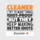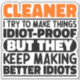 Funny Cleaner Sayings "Cleaner I Try To Make Things Idiot Proof But They Keep Making Better Idiots". Grab this Funny Cleaner design as a funny gifts for an awesome mom, dad or friend.