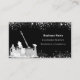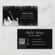 An elegant and glamourous business card on a black background decorated with faux glitter dust on front and cleaning equipment. Personalize and add Your name, text contact info and your own QR code to your website address.