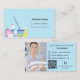 Cleaning service light blue photo QR code Business Card