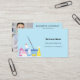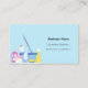 A light blue background decorated with cleaning equipment. Personalize and add Your photo, name, text contact info and your own QR code to your website address. Black text.