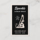 Simple gold monogrammed vacuum cleaner with retro sparkle stars on black background.