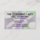 Simple cleaning service business card design created with bold easy to read text you can replace with your own business information and image of cleaning supplies lightly printed in the background so your information stands out well. Created for a residential or commercial cleaning service.