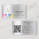 An elegant and glamourous business card on a faux silver metallic looking background decorated with faux glitter dust on front and cleaning equipment. Personalize and add Your name, text contact info and your own QR code to your website address. Facebook and Instagram icons. Delete if not wanted.