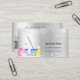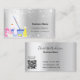An elegant and glamourous business card on a faux silver metallic looking background decorated with faux glitter dust on front and cleaning equipment. Personalize and add Your name, text contact info and your own QR code to your website address.