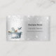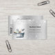 An elegant and glamourous business card on a faux silver looking background decorated with faux glitter dust on front and cleaning equipment. Personalize and add Your name, text contact info and your own QR code to your website address.