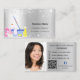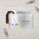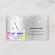 An elegant and glamourous business card on a faux silver looking background decorated with faux glitter dust on front and cleaning equipment. Personalize and add Your photo, name, text contact info and your own QR code to your website address.