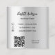 An elegant and glamourous business card on a faux silver metallic looking background decorated with faux glitter dust on front and cleaning equipment. Personalize and add Your name, text contact info and your own QR code to your website address.