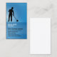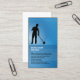 In this Cleaning Services business card, the silhouette of a man using a mop forms the main image over a striped gradient blue background. Customize this card immediately with your name and details.