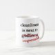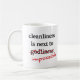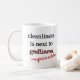 Black serif text on white says: “Cleanliness is next to godliness” — but “godliness” has been scribbled out with a red pen and replaced with a handwritten “impossible”.