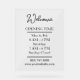 Display your opening times clearly with this modern small business hours design. Customize with your company name, logo, and hours of operation for a clean professional look. Perfect for shops, cafes, salons, restaurants, and offices. This simple and easy-to-read style helps customers know exactly when you’re open.