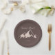 This clear mountain country wedding cake paper plate is perfect for a rustic wedding reception. The design features an idyllic watercolor beige mountain.