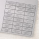 Elegant transparent return address labels for your invitation envelopes. Each label on the 8x8" sheet is slightly less than 1" high by about 2.5" wide.
