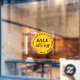 Custom sale window cling for businesses. Sign can be customized with discount percentage or other text below main Sale text. Use for small businesses, seasonal sales, or to attract customers