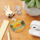 Clearwater Beach, Florida with a vintage illustration of a sunset with palm trees and the name Clearwater Beach at the top in a retro font with Florida at the bottom. Beautiful vintage colours.