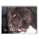 Cleo the newf here on a calendar! Great gift for anyone who loves brown and white newfs! Cleo is a brown/white landseer Newfoundland dog, and is a great business assistant for Kanweienea Kreations!