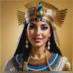 “Cleopatra VII's Realism: A Portrait”. A lifelike rendering of Cleopatra VII shows her with a prominent nose, almond-shaped eyes, and a strong chin. Her hair, braided and adorned with feathered gold, complements her royal her golden diadem in the shape of a vulture, which symbolised purity and motherhood, and also the eternal cycle of death and rebirth. Pearl earrings and an intricate necklace enhance the queen's commanding presence with an intelligent gaze reflecting her legendary charisma and wit.