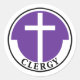 Circle with white cross and purple circle and the word "Clergy"