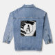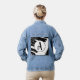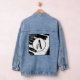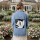 Une veste en denim bleu et design sur le thème de la musique sur un panneau décoratif à l'arrière. Le panneau affiche une photo en noir et blanc d'un piano vintage, et peut être customisé avec une initiale dans une police de script rétro. La première apparaît dans un cercle blanc avec un contour noir, au centre du design, formant un monogramme élégant. Cette veste accrocheuse est un excellent cadeau pour les amateurs de musique, comme les pianistes classiques, les professeurs de musique, les étudiants en piano et les joueurs de jazz.