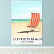 Cleveleys Beach, lancashire vintage travel poster of a striped deck chair on a sandy beach.