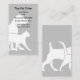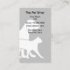 Cool pet sitter business card design template in a unique clever front and back design that has a dog and cat with the front sticking out on one side and the back sticking out on the other. Designed for a pet sitter, professional pet sitter, or franchise pet groomer.