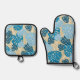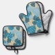 Cliff Hanger Hawaiian Monstera Leaf Denim Blues Oven Mitt & Pot Holder Set