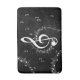G Clef among white notes of music on black. The black background makes the bright white notes pop.
