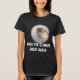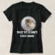 Photo of a wet unhappy sparrow. Text Make the climate great again on the front. Climate change awareness text on the back. Women's t-shirt. Fully customizable. You can change or delete the image and the text. For dark and black products.