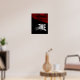 Climate change poster in red and black with fiery red landscape and black and white watch and white text.