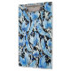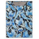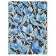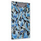 A stunning painting in the traditional Petrykivka style features delicate blue and sky-blue flowers blooming vibrantly against a deep black background. Each petal is meticulously detailed, showcasing intricate brushstrokes and ornamental patterns typical of this Ukrainian folk art. The floral design radiates elegance and harmony, with symmetrical arrangements and subtle gradients that highlight the artist's skill. The dark backdrop intensifies the colours, making the flowers appear almost luminous, while smaller ornamental elements like leaves and tendrils add a sense of movement and life to the composition.