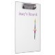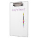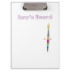 A clipboard with Polly the paintbrush character from the children’s book “ The Paintbrush Without Colour” by Linda Kavalsky.The text on the clipboard is customizable.