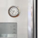 Time and Money. A large round atomic clock with hygrometer and thermometer on a wall with parts of a variety of money. time_clock_money_wall_OPT300tsRGB.jpg