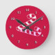 The clock face is red with white three dimensional numerals. In the center is a white striped candy cane with pink shadow. ***Part of a coordinated set - BKM1a.