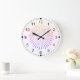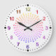 Galaxy of rainbow colored stars that spirals around a clear center point. Small stars in center to larger stars at outer edge. Rainbow colored numerals with black drop shadow. Minute marks at edge, 12, 3, 6, and 9 have large black dots .