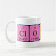 Clodagh spelled out as Cl O D Ag H (Chlorine Oxygen Deuterium Silver Hydrogen) on a mug for the scientist in you.