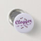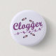 This pretty design for clog dancers features the word "Clogger" in purple cursive type with a row of five tiny dancing stick figures below. It also has four shoe prints with taps on them. It's a great way to show off your love of clogging. Background colour is customizable. Also available in blue.
