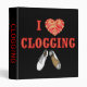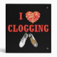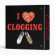 The "I Love Clogging" classic front / back on a black binder, with a fancy heart and a pair of white clogging shoes. Great for the clog dancer in your life. Text along the spine says "Clogging"