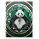 A captivating scene features a rotund panda amidst geometric shapes on a deep green backdrop. Intricate web-like patterns enhance the beauty, showcasing vibrant colours and meticulous details in a fantasy setting.