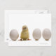 Close-up of a baby chick with three eggs postcard