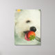 Close-up of a Bichon Frise eating a strawberry Canvas Print