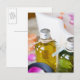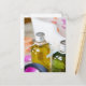 Close up of bottles with massage oils postcard