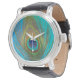 Close up of peacock feather watch