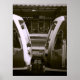 This sepia toned poster print captures a close up view of two trains meeting at a railway station platform, creating a striking urban scene full of detail and atmosphere. The composition highlights the symmetry of modern rail transport while the vintage sepia effect adds a timeless quality to the image. Perfect for railway enthusiasts, city lovers, or anyone who appreciates industrial photography, this print makes a unique addition to home, office, or studio decor. Display it as a focal point in your space to bring a sense of movement, travel, and history into your surroundings. Available as a high quality poster print, it also makes a thoughtful gift for train lovers and collectors of transport themed art.