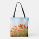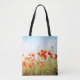 Close up poppies on field. Wild flowers in springt Tote Bag
