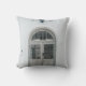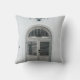 CLOSED GREY WOODEN DOOR BELOW BLACK LIGHT SCONCE THROW PILLOW